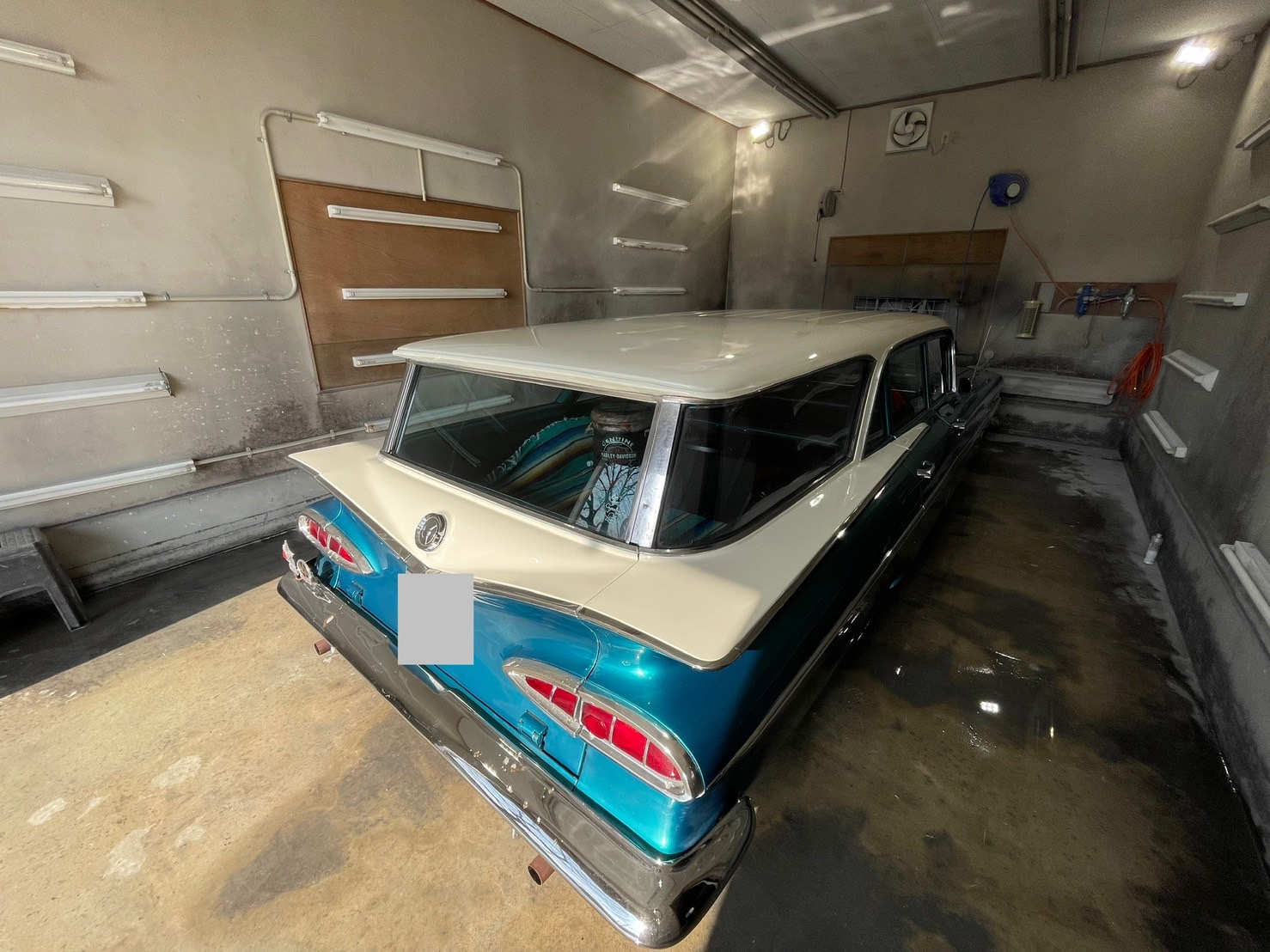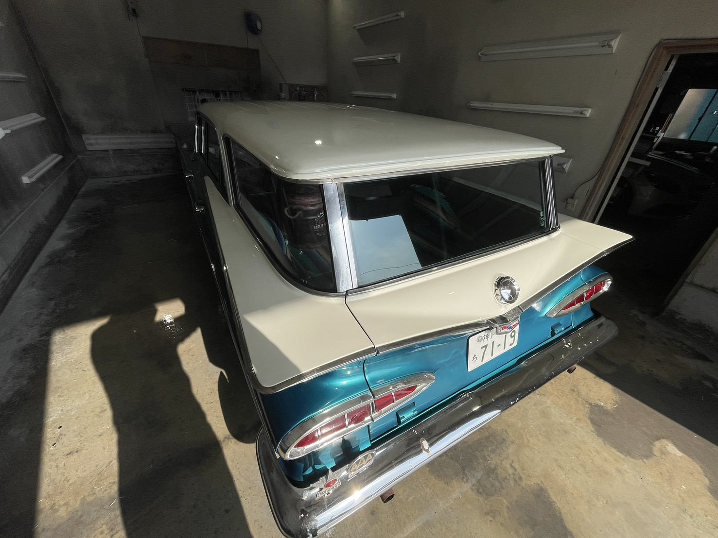 お客様からルーフとウィングを黒色からオリジナルカラーの白色に戻して欲しいとのご依頼でご入庫いただきました。