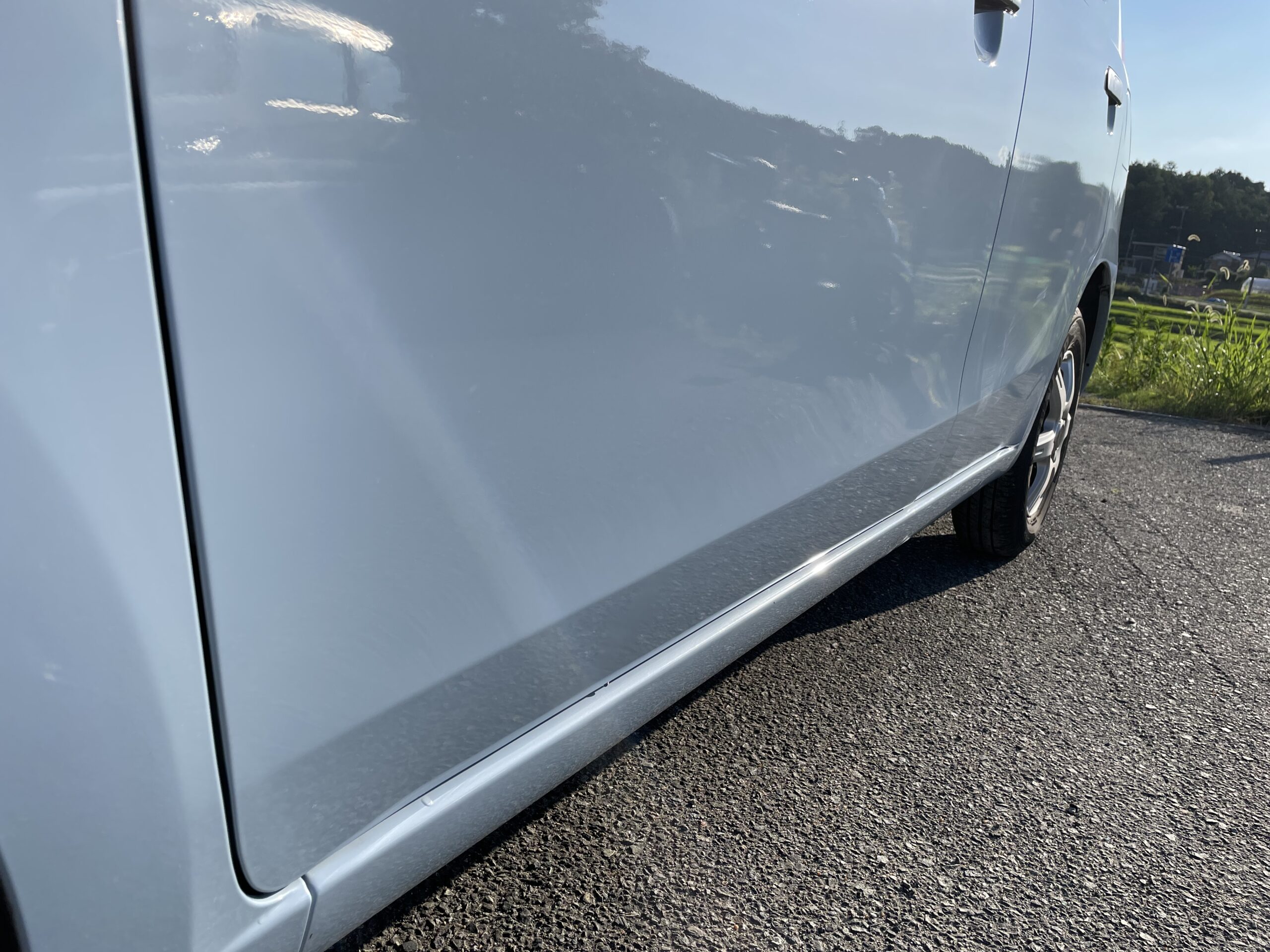 いつもお世話になっているT様から左のフロントドアとゲートの上面の板金塗装のご依頼を頂きました。このスズキのブルーは見た目はソリッドに見えますが、実はメタリックとパールが含まれていて光に当たると美しい輝きを放ちます。調色をしていくと青が効きすぎてしまったり、逆に青が白に負けたりとなかなか近い色が出てくれませんのでとても難儀します。でも調色を重ねて良い色に染まりました。T様の乗っておられるお車はどれも美しく手入れされていてお車を愛し大切にされている事が伝わります。本当にいつもありがとうございます!!