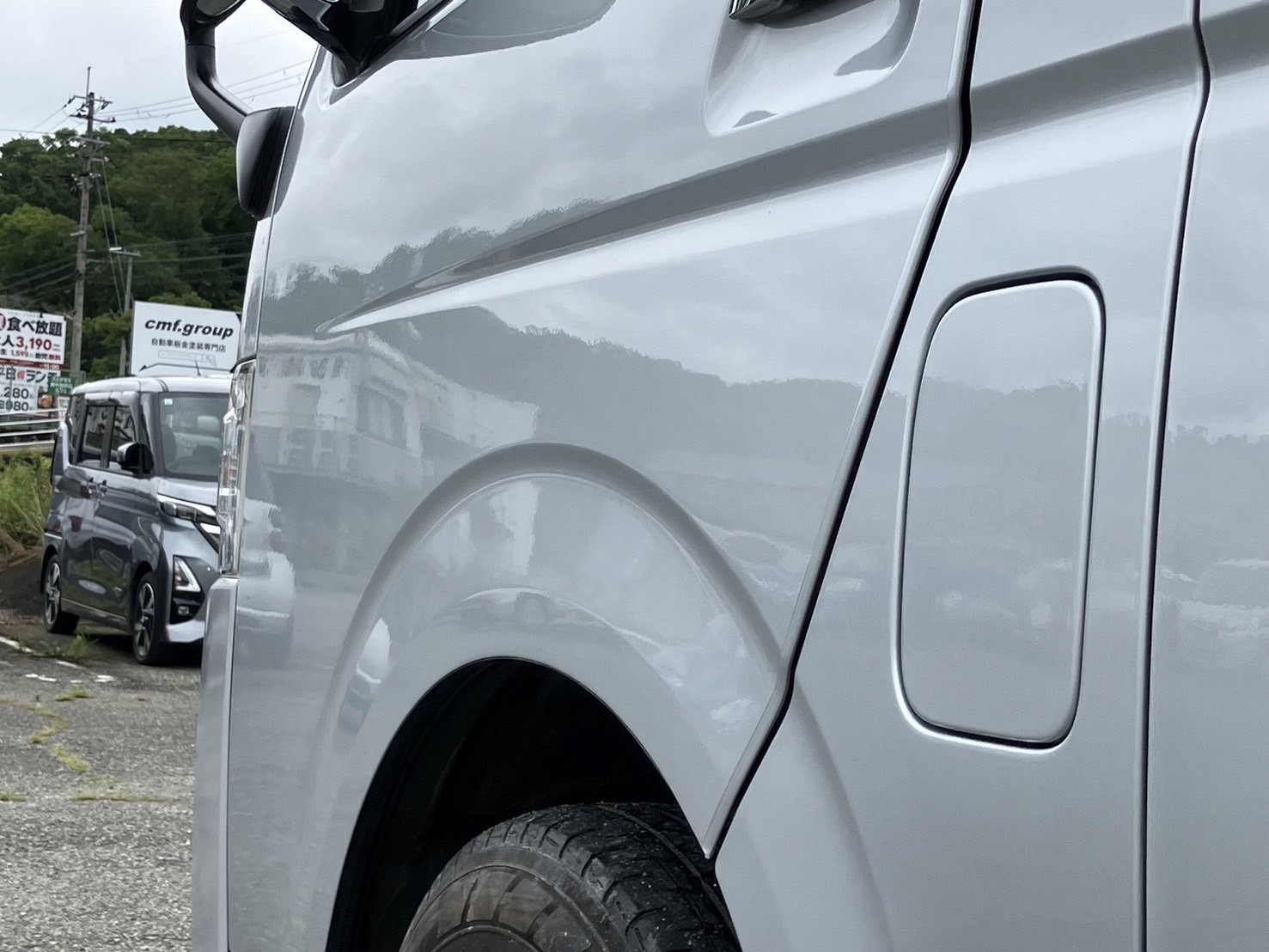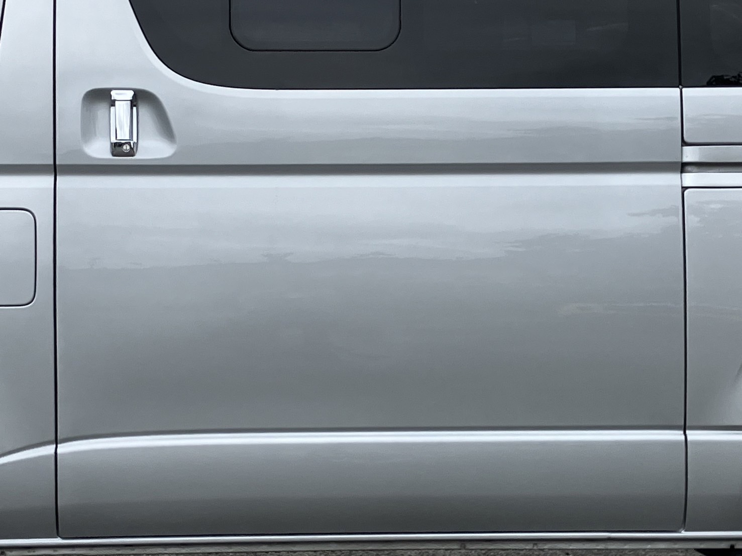 トヨタのディーラー様からのご依頼です。 左側面、FRバンパーの板金補修塗装という内容でした。 気温が高い中での広面積の塗装は決して楽ではありません。 しかもシルバーの色は温度が高いとラメが立って違う色見になってしまいますので、色が乾き切る前に色を重ねて色決めをしていかなくてはいけません。 ここにも塗装士の技術が光ります。 一度弊社のシルバーメタリック塗装をご堪能ください。 いつもありがとうございます。