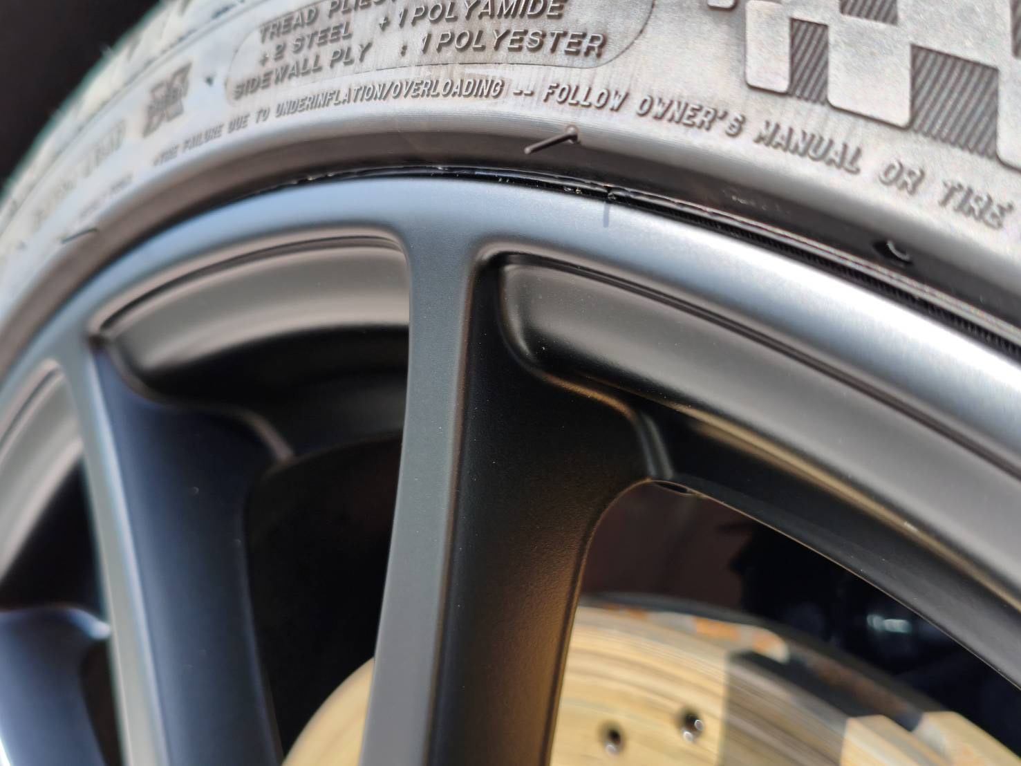 ホイールは3分艶のマッドブラックでしたので、残りの3本ときっちり色が合うように塗装させていただきました。