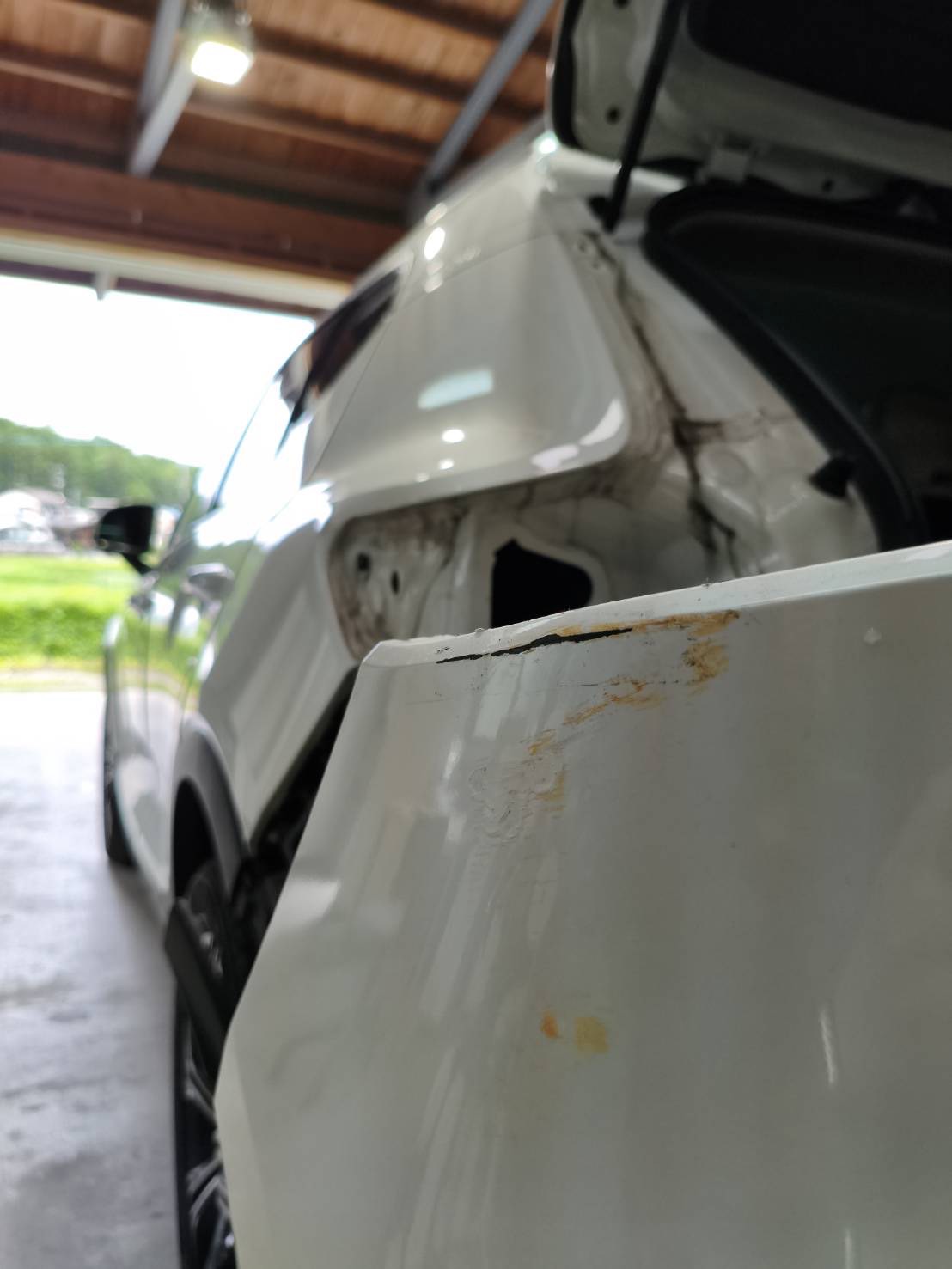 リアバンパー左側部分と左クオータと左テールレンズを損傷されたという事でご依頼をいただきました。