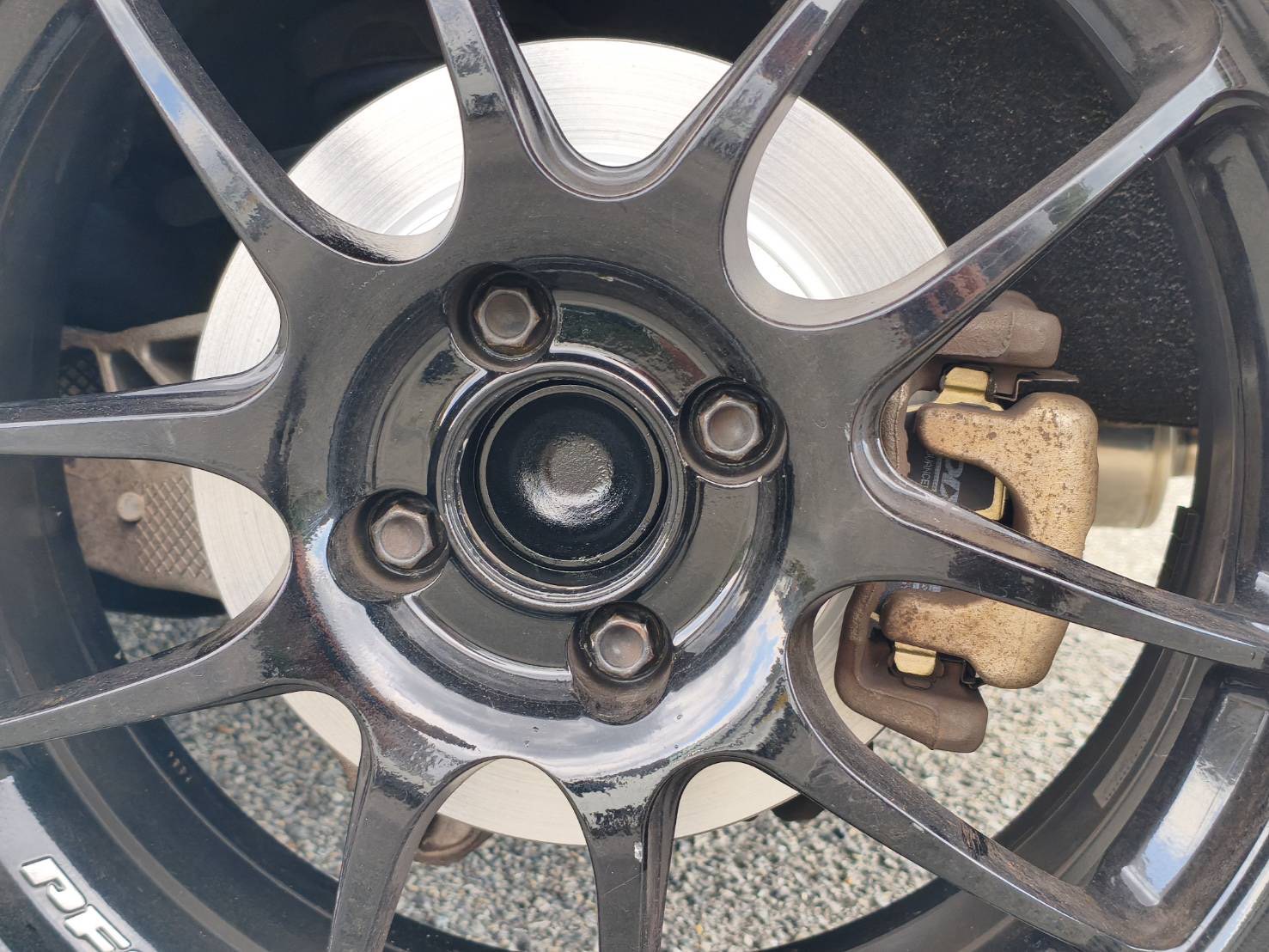 ブレーキパッド、ローター交換とハブリングの耐熱塗装を施工させていただきました。