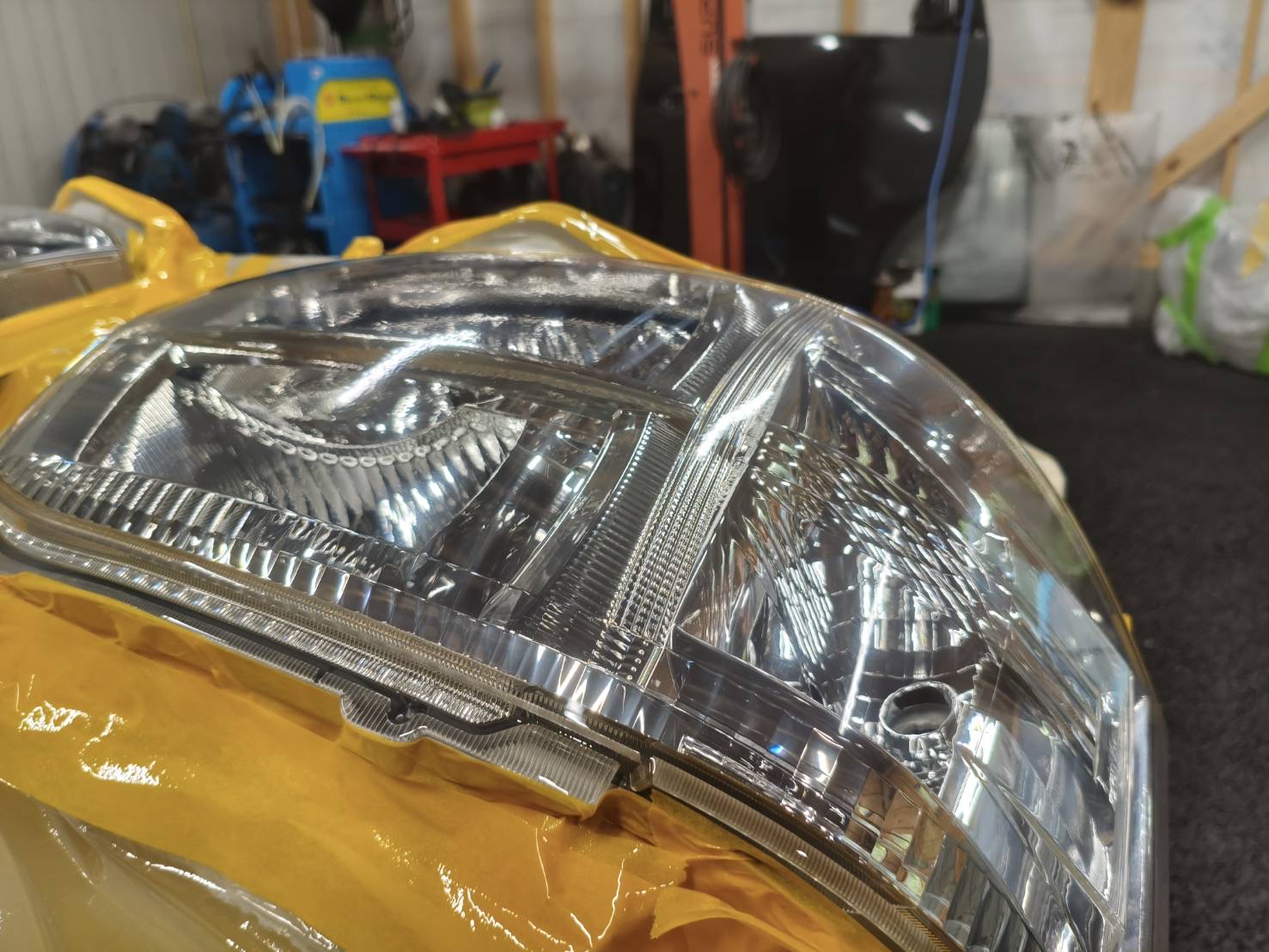 ヘッドライトクリア塗装のご依頼をいただきました。写真はビフォーアフターになります。表面のクリアが劣化しておりましたので、サンディングを行いクリア塗装で仕上げました。ヘッドライトの曇りが気になっておられ